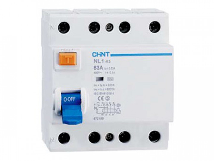 Диференційний автоматичний вимикач серії NL1-63 відомого виробника (пристроїв захисту електрообладнання) Chint. 4-полюсний дифавтомат, з номінальним струмом 63A, та струмом відключення 6kA. Стандартне кріплення на DIN рейку у модульні щити.